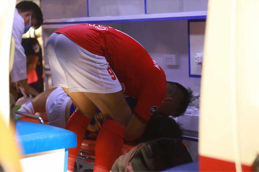 Sau pha bóng triệt hạ đồng nghiệp, Hoàng Thịnh tỏ vẻ lo lắng và ân hận hơn bao giờ hết. Bằng chứng là anh đã lập tức chạy thẳng lên xe cấp cứu của Hùng Dũng để nói những lời xin lỗi và động viên tới cầu thủ này.