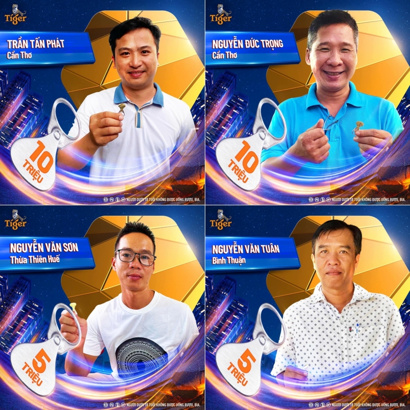 Đến thời điểm hiện tại, trong số 23 quả bóng vàng Tiger 100 triệu được tung ra thị trường, hiện đã có 13 bóng vàng tìm được chủ nhân. Cùng với đó, hàng trăm giải thưởng tiền mặt với trị giá 10.000.000 đồng/giải và 5.000.000 đồng/giải cùng hàng trăm nghìn giải thưởng tiền mặt trị giá 20.000 đồng cũng đang chờ đợi những “bàn tay vàng” trong làng bật nắp.