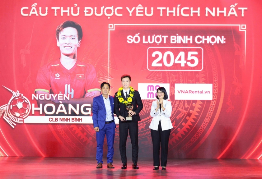Bên cạnh giải thưởng Quả bóng vàng Việt Nam 2025, Hoàng Đức còn được vinh danh Cầu thủ được yêu thích nhất, cho thấy sự ghi nhận không chỉ từ giới chuyên môn mà còn từ đông đảo người hâm mộ dành cho phong độ, bản lĩnh và hình ảnh chuyên nghiệp của anh.