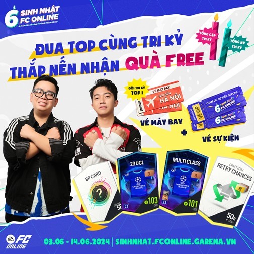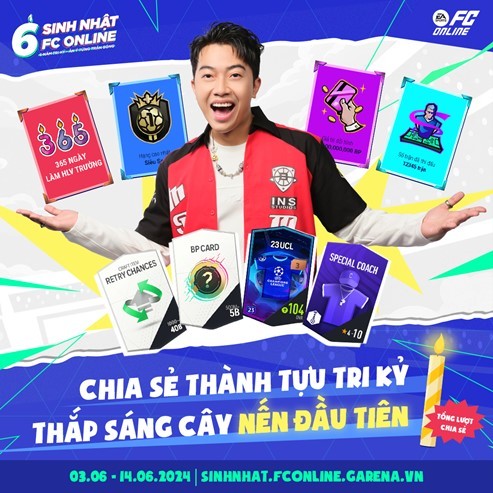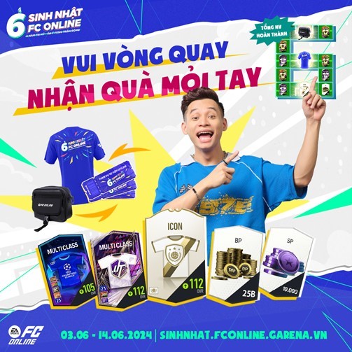 Chuỗi sự kiện “Sinh nhật FC Online 6 tuổi – 6 năm tri kỷ, Ăn ý từng trận bóng” bắt đầu từ ngày 3/6 – 14/6 là cơ hội tuyệt vời để người chơi có thể nhận về hàng chục tỷ BP, thẻ ICONS +5 vĩnh viễn.