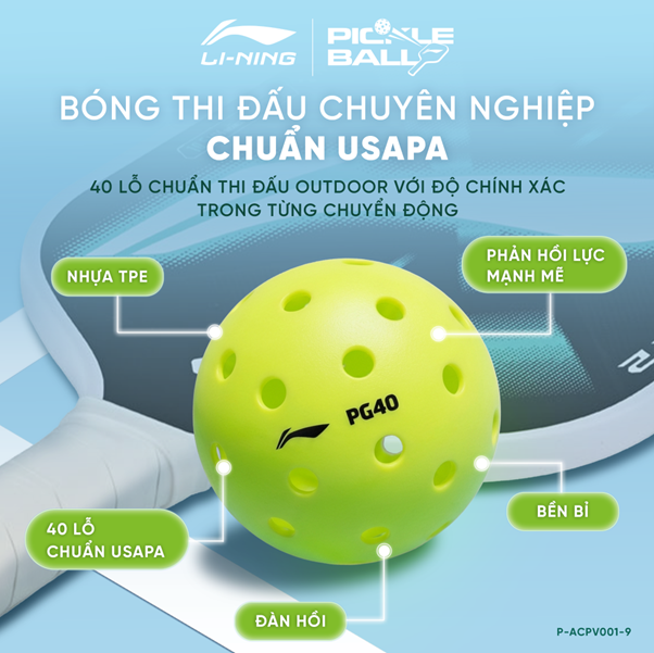 Không chỉ vợt, bóng Pickleball cũng là yếu tố quan trọng ảnh hưởng trực tiếp đến chất lượng trận đấu. Theo tiêu chuẩn của USA Pickleball Association (USAPA), bóng thi đấu cần đảm bảo độ nảy ổn định, quỹ đạo bay chính xác và độ bền cao.