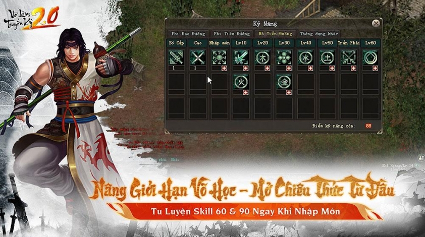 Sự thay đổi được đánh giá là mới lạ và thú vị nhất chính là việc bạn có thể sử dụng kỹ năng 9x của môn phái ngay từ cấp 10. Điều này mang tới vô vàn biến chuyển trong giang hồ, bởi game thủ sẽ phải thay đổi hoàn toàn thói quen cày cấp, farm nguyên liệu lẫn chiến đấu ở các cấp độ đầu tiên. Ngoài ra, cơ chế trang bị cũng có thêm các dòng đặc biệt, giúp mở ra nhiều hướng build khác nhau cho từng hệ phái.