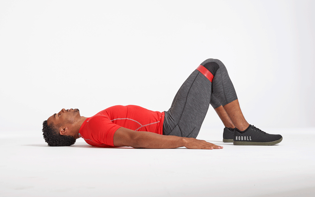 - Nằm ngửa, đầu gối gập và bàn chân đặt trên sàn cách nhau một khoảng rộng bằng hông.