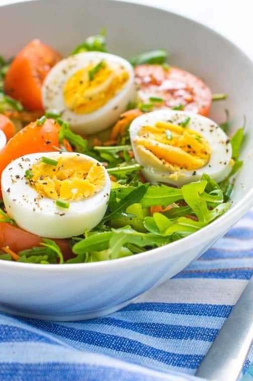Trứng rất hợp với rau. Điều này có nghĩa: ăn trứng là một cơ hội tuyệt vời để bổ sung thêm cả lượng rau (chất xơ và vitamin) vào bữa ăn của bạn. Cách đơn giản nhất là hãy trộn trứng luộc kèm thêm những loại rau tươi ngon để tạo ra 1 món salad cho mùa hè.