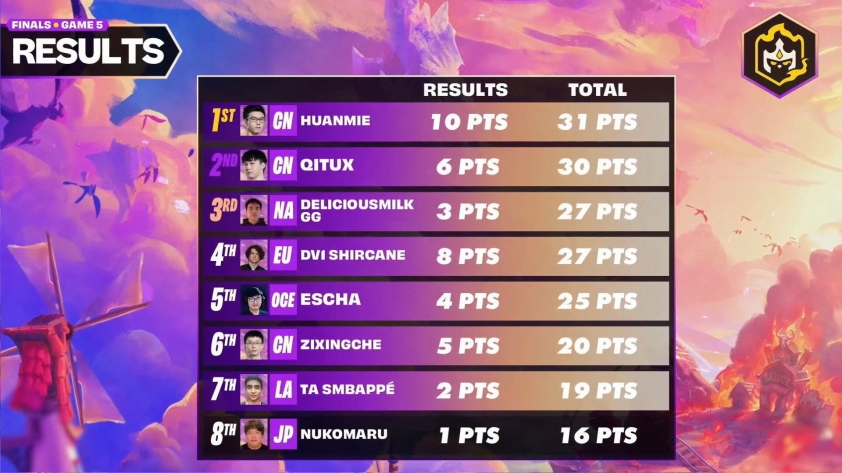 Tuy nhiên, thành tích của Huanmie thực tế phụ thuộc khá nhiều vào may mắn khi anh chàng này liên tục out top tại các ván đấu quan trọng, nhưng đã kịp thời chiến thắng ở ván đấu cuối cùng nhờ lấy được cùng lúc 2 ấn Quân Đoàn.