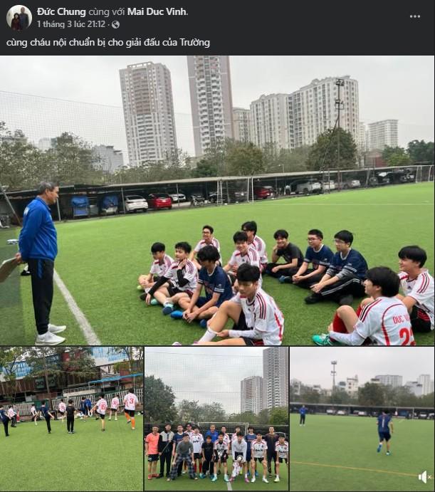 Sau đó, HLV Mai Đức Chung đã đăng tải những hình ảnh đáng nhớ này trên trang Facebook cá nhân của mình kèm với dòng trạng thái: "Cùng cháu nội chuẩn bị cho giải đấu của trường".