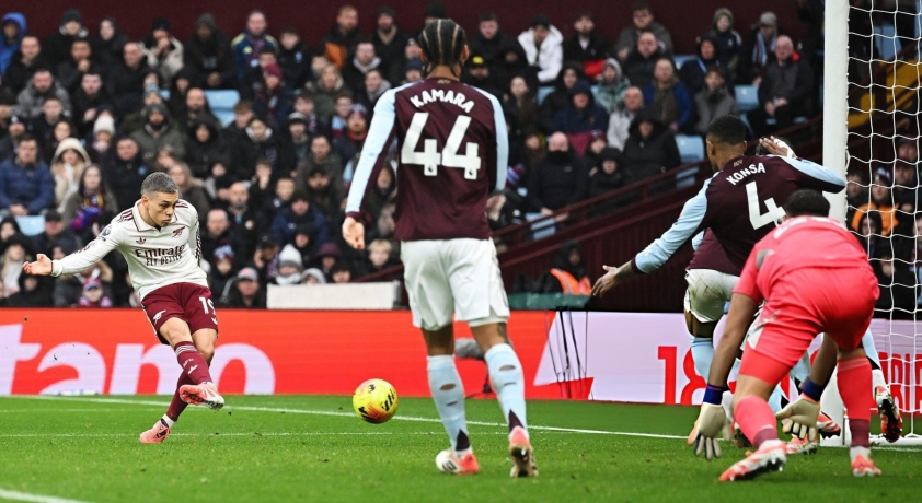 Bước sang hiệp hai, Arsenal đẩy cao đội hình ngay sau tiếng còi khai cuộc với hàng loạt tình huống tấn công liên tiếp. Leandro Trossard và Bukayo Saka liên tục tạo ra sóng gió trước khung thành Aston Villa, nhưng Emiliano Martinez vẫn thi đấu chắc chắn. Sức ép của đội khách cuối cùng cũng được cụ thể hóa ở phút 52, khi Trossard chớp thời cơ sút tung lưới Villa sau pha bóng bật ra, đưa trận đấu trở về thế cân bằng 1-1.