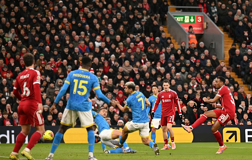 Chỉ một phút sau, đội chủ nhà tiếp tục nhân đôi cách biệt khi Florian Wirtz băng xuống đón đường chọc khe tinh tế của Ekitike và dứt điểm quyết đoán, giúp The Kop bước vào giờ nghỉ với lợi thế 2 bàn.