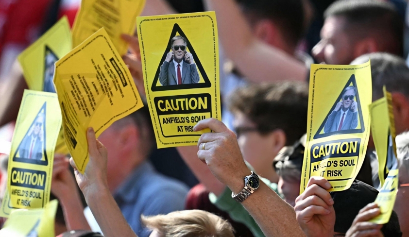 Ở phút 13 của trận đấu giữa Liverpool và Crystal Palace tại Anfield, các cổ động viên đội chủ nhà đã đồng loạt giơ cao những tấm thẻ vàng như một hình thức phản đối ban lãnh đạo FSG, nhằm bày tỏ sự không hài lòng trước kế hoạch tăng giá vé lên tới 13% trong ba năm tới.