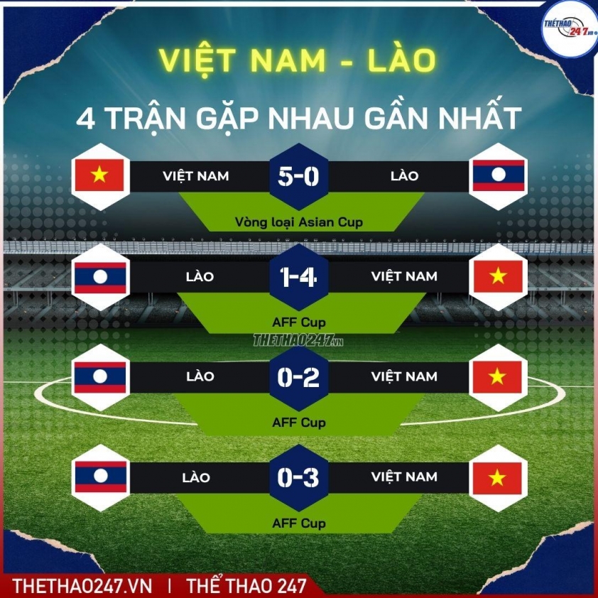 ĐT Việt Nam đã thắng 4/5 trận gần nhất, với chỉ 1 thất bại duy nhất trước Malaysia tại vòng loại Asian Cup 2027. Trái ngược với Việt Nam, ĐT Lào chỉ 1 lần được hưởng niềm vui chiến thắng (trước Nepal), trong đó phải nhận tới 4 thất bại.