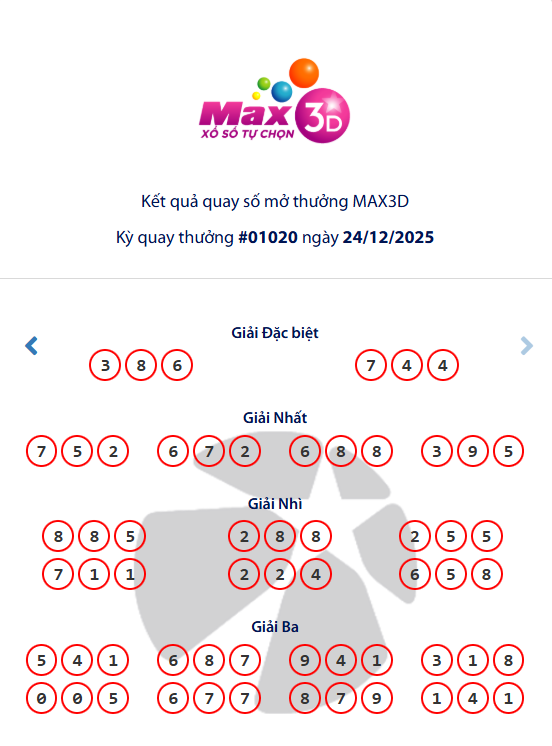 - Cơ cấu giải thưởng Vietlott Max 3D
