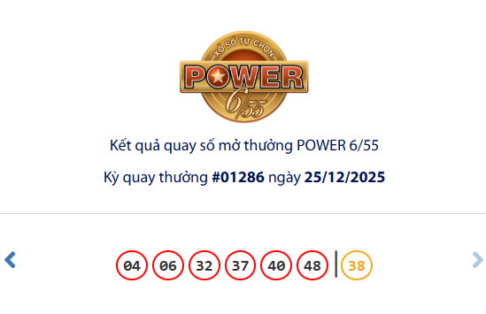 Vietlott 25/12/2025 - Kết quả xổ số Vietlott Power 6/55 ngày 25/12/2025