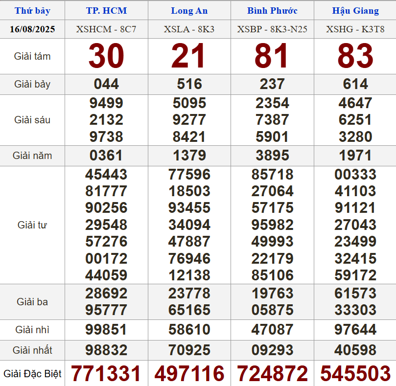 Kết quả xổ số miền Nam (XSMN) hôm nay ngày 16/8