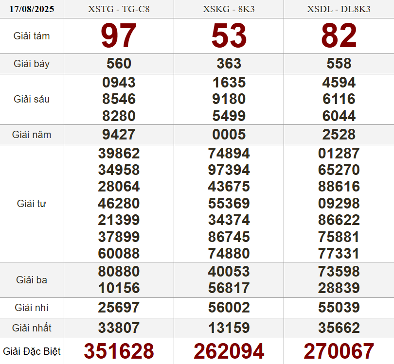XSMN 17/8/2025 - Kết quả xổ số miền Nam hôm nay 17/8/2025