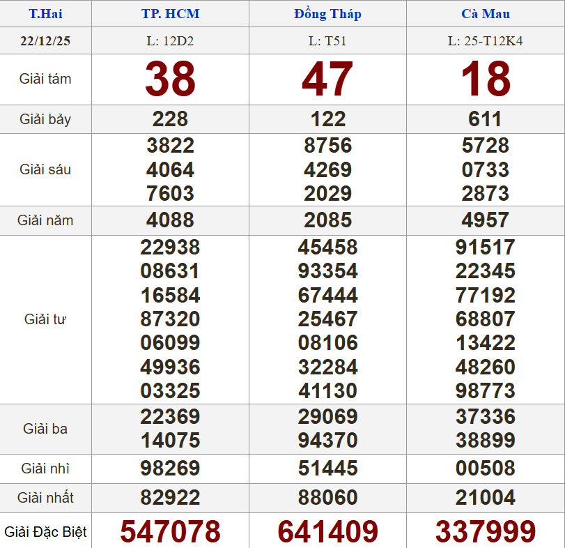 Kết quả xổ số miền Nam (XSMN) ngày 22/12