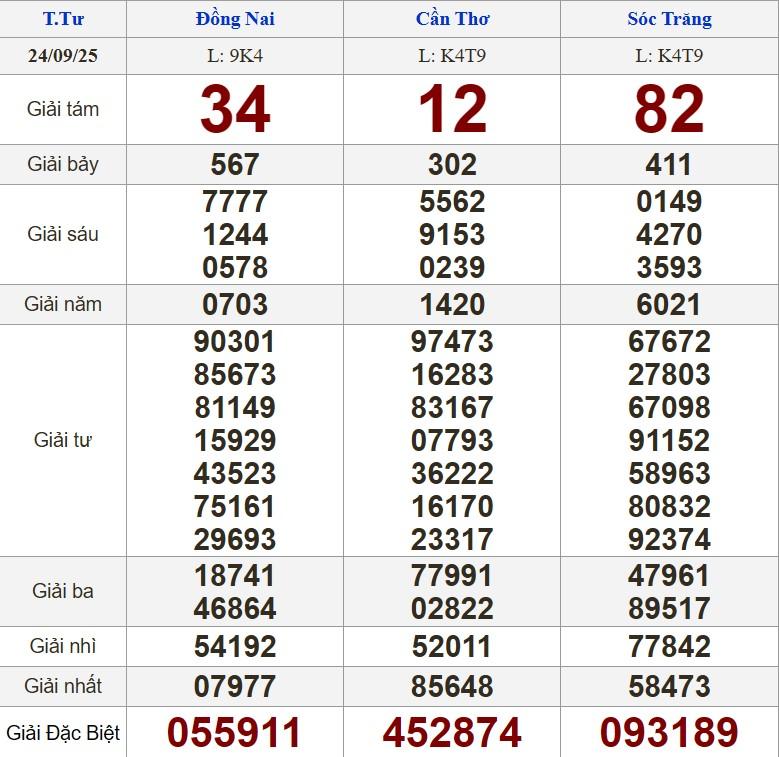 XSMN 24/9/2025 - Kết quả xổ số miền Nam hôm nay 24/9/2025