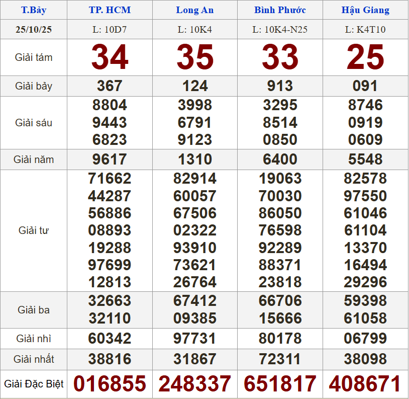 XSMN 25/10/2025 - Kết quả xổ số miền Nam hôm nay 25/10/2025