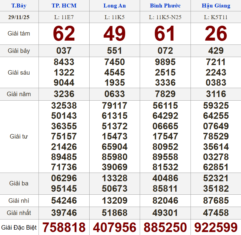 Kết quả xổ số miền Nam (XSMN) ngày 29/11