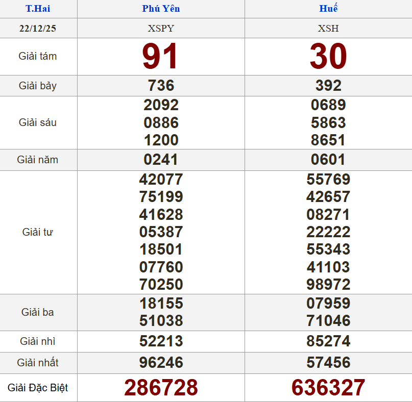 Kết quả xổ số miền Trung (XSMT) ngày 22/12