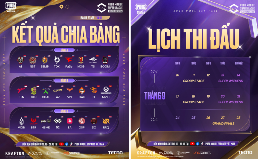 PMSL SEA Fall 2025 chốt ngày khởi tranh, Việt Nam góp mặt với 4 đại diện.
