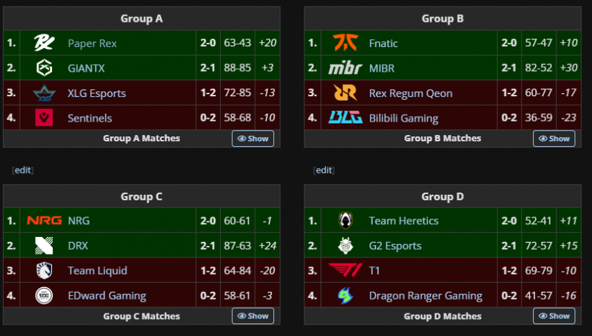 Bảng xếp hạng VALORANT Champions Paris 2025