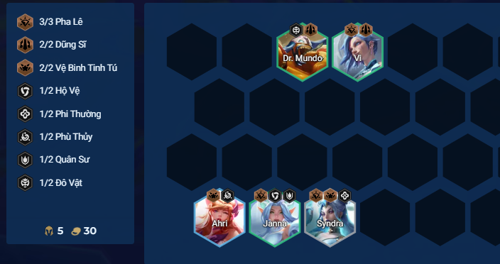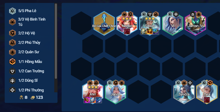 - Có Ahri và Thần Kiếm Manazane sớm thì hướng đến đội hình này luôn