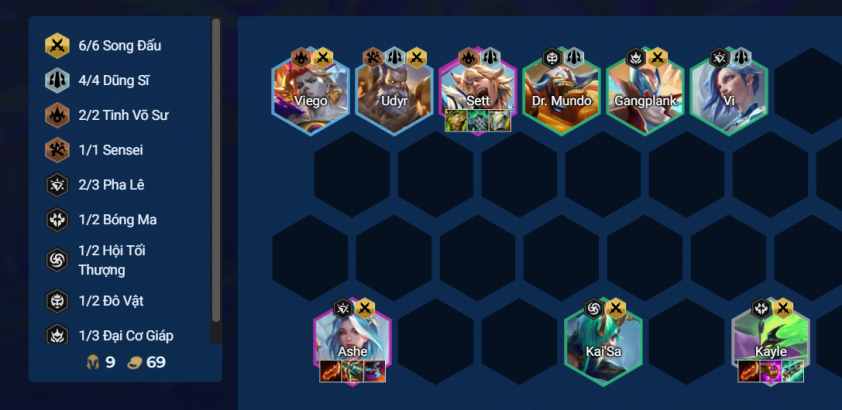 - Thứ tự ưu tiên trang bị: Ashe >>> Sett >>> Kayle / Viego