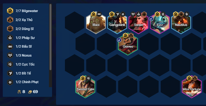 - Bạn có thể chơi với 3 Bilgewater, trong giai đoạn chuẩn bị thì bỏ 5 - 7 Bilgewater vào sân để các trang bị xịn xuất hiện trong cửa hàng