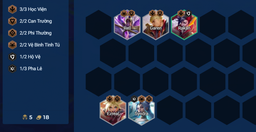 Bắt đầu giao tranh: Các tướng Học Viện đã Thức Tỉnh và đồng minh liền kề với mỗi tướng này nhận 70 Máu, 8% SMCK và 8% SMPT. Các tướng Học Viện nhận gấp đôi. Nhận 1 Katarina.