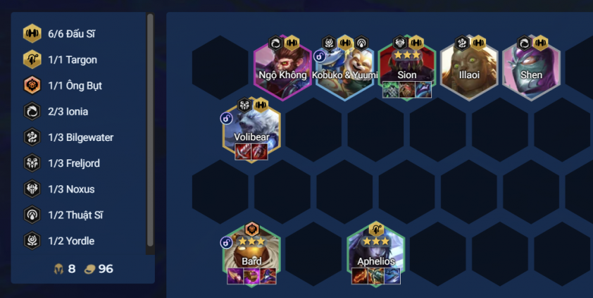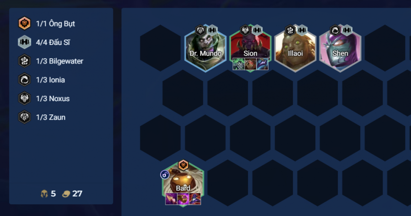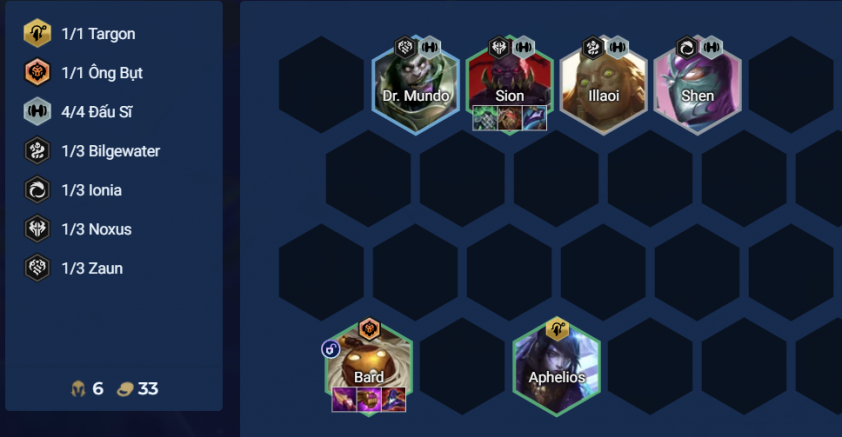 - Bard tăng sát thương theo số tướng 3 sao trên sân, do đó nếu Illaoi và Shen xuất hiện nhiều 7-8 con thì có thể reroll luôn