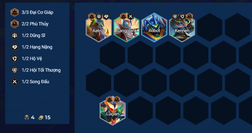 - Lên cấp 8 ở vòng 4-2, roll cạn tiền tìm các tướng cần thiết