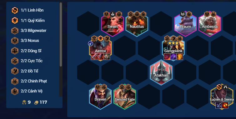 - Sau khi có Gangplank và Nautilus, bỏ Twisted Fate và Graves ra