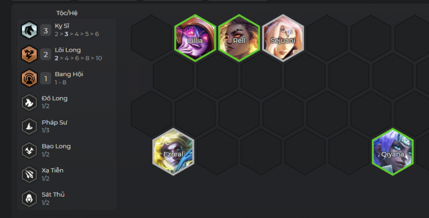 Tướng ở chính giữa của hàng giữa sẽ nhận 45 Sức Mạnh Phép Thuật, tăng thành 135 sau khi sấm sét Lôi Long giáng xuống. Nhận 1 Qiyana.
