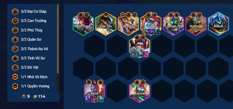Nếu lấy được lõi Tất Tay Bậc Đồng, bên cạnh đội hình Ryze - Samira cơ bản, bạn cũng có thể hướng tới đội hình Gwen với các chủ lực bậc 5 vô cùng mạnh mẽ.