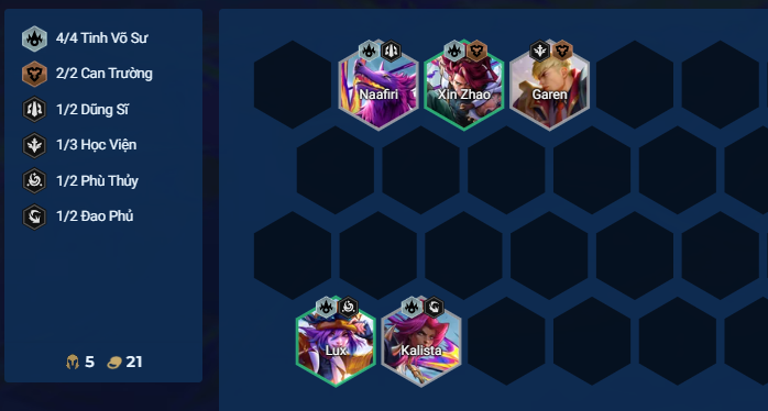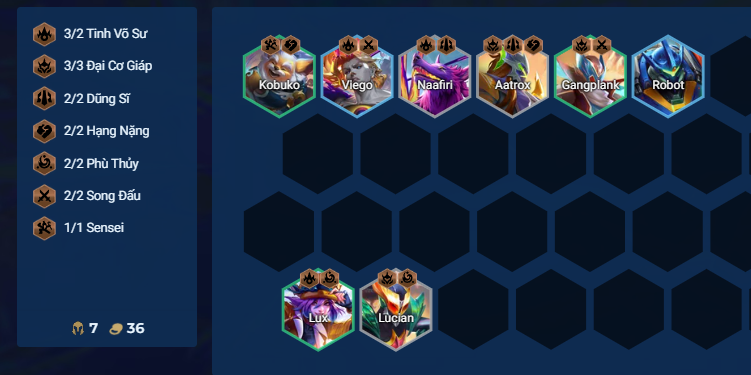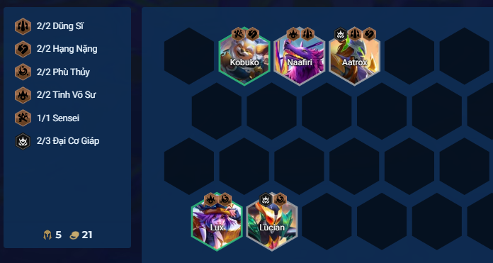 - Nếu có lõi Tất Tay Bậc Đồng sớm, flex đội hình sao cho kích được nhiều tộc hệ nhất có thể (xem ví dụ bên dưới)