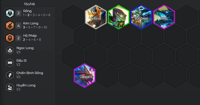 - Có 3 Kim Long sớm thì có thể hướng tới đội hình này