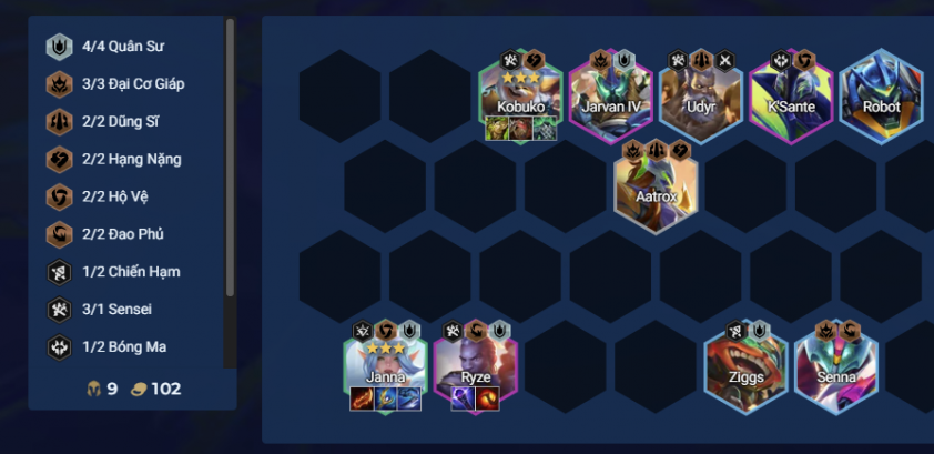 - Lưu ý phải đặt đúng 4 Sensei trên sân (Janna Cựu Binh tính là 1 Sensei)