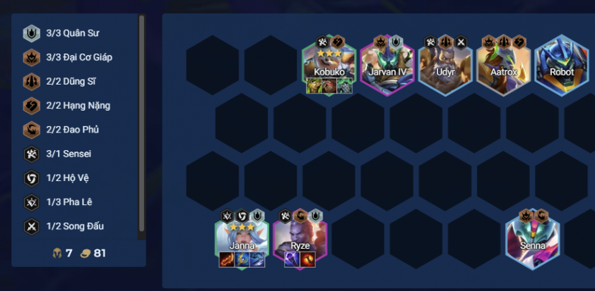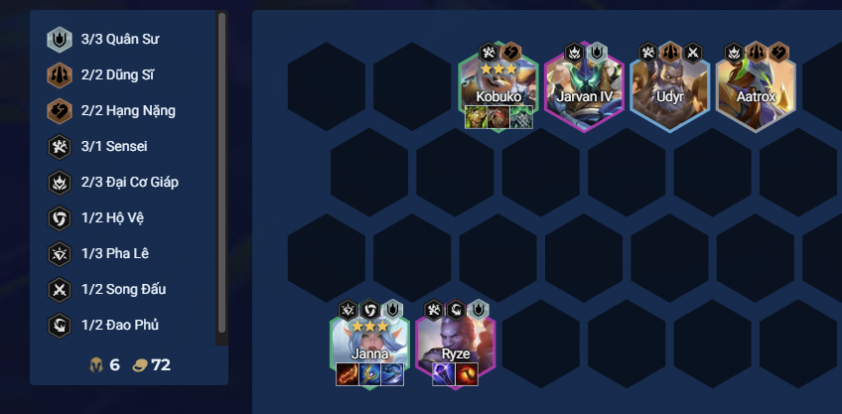 - Reroll ở cấp 6 để nâng Janna và Kobuko lên 3 sao