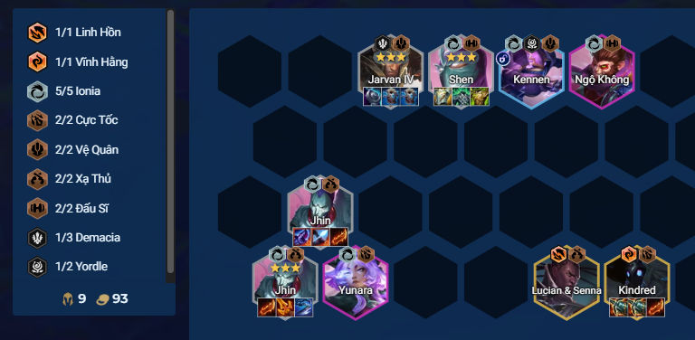 - Thứ tự ưu tiên trang bị: Jhin >>> Shen >>> Kindred