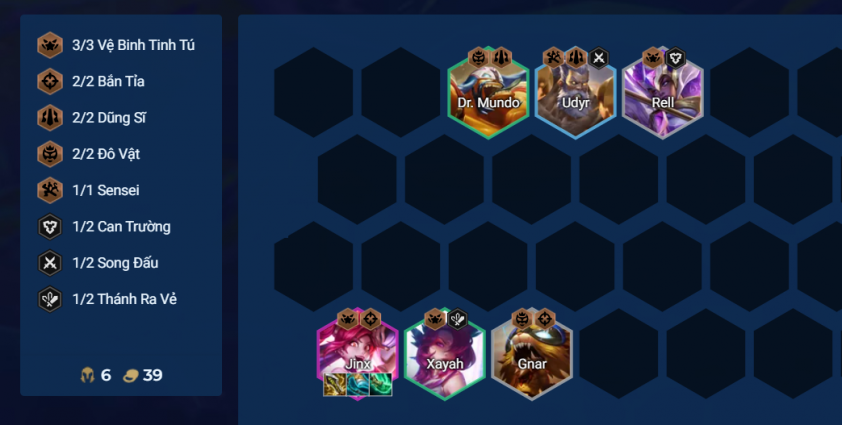 Tướng Đô Vật nhận 10% Tốc Độ Đánh. Khi tộc/hệ Đô Vật được kích hoạt, các tướng Đô Vật nhảy vào giữa trận chiến khi bắt đầu giao tranh. Các tướng Đô Vật nhảy vào, gây 300% Sức Mạnh Công Kích Cơ Bản. Nhận 1 Dr. Mundo.
