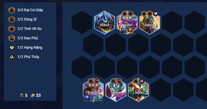 - Reroll ở cấp 5 nâng Kalista và Naafiri / Aatrox lên 3 sao