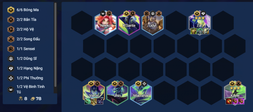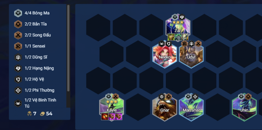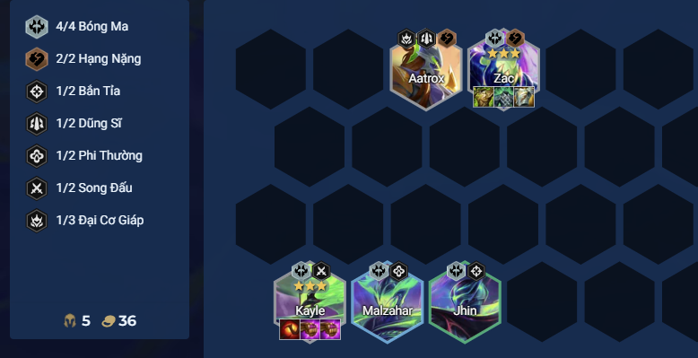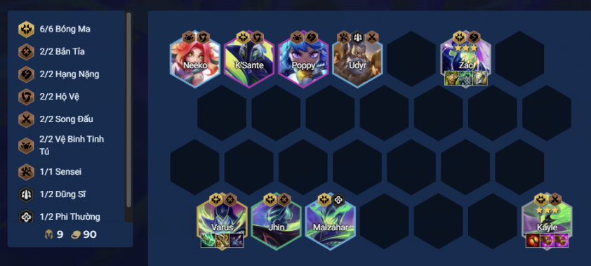 Bóng Ma là tộc có khả năng gây sát thương trực tiếp và hồi máu, rất thích hợp để đánh các đội hình tanker, gây DPS theo thời gian. Đội hình Kayle Bóng Ma sẽ xoay quanh việc reroll Kayle - Zac 3 sao ở cấp 5, sau đó lên cấp 8 tìm thêm Varus để gánh dame cuối trận.