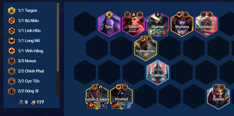 - Sau khi đội hình đủ khỏe mới lên cấp 9, bán các tướng Noxus và thay bằng tướng 5 vàng chất lượng