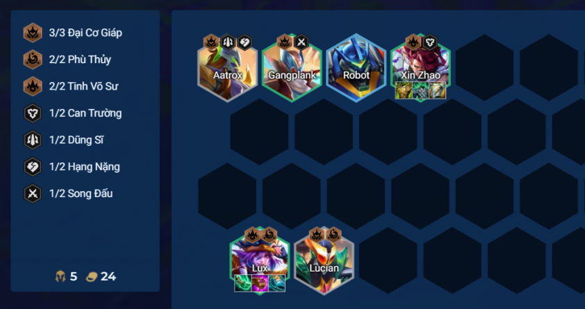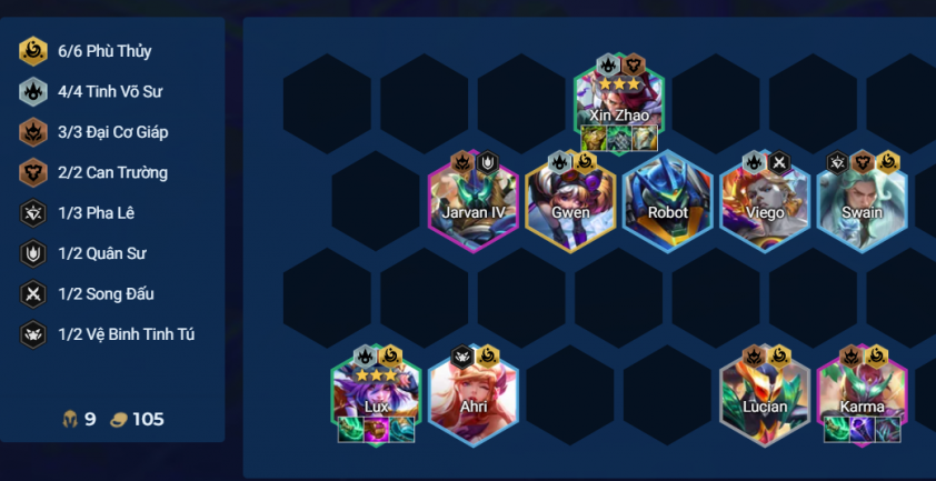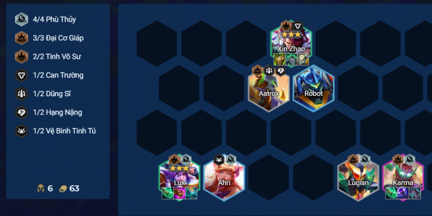 - Giữ ở cấp 6 không lên cấp, reroll Lux và Xin Zhao 3 sao