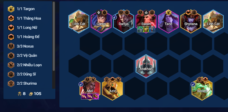 - Thứ tự ưu tiên trang bị: Mel >>> Swain >>> Ryze >>> Sylas