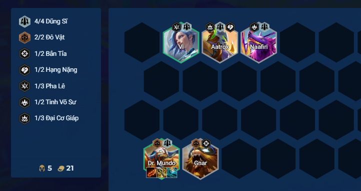 Nếu lấy được lõi anh hùng "Cho Chúng Nếm Mùi Ghế" ngay đầu trận, bạn có thể xây dựng đội hình xoay quanh Mundo và reroll ở cấp 6.
