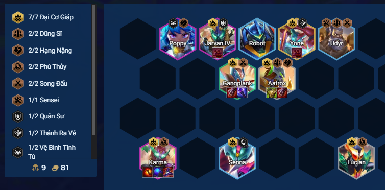 - Cuối trận, nếu có Lee Sin 2 sao thì thay Poppy