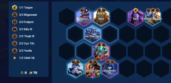 - Ở giai đoạn chuẩn bị, rút xuống còn 3 Bilgewater, sau đó mở cửa hàng mua Illaoi bằng ngân xà, nâng lên 3 sao