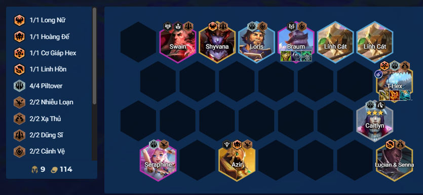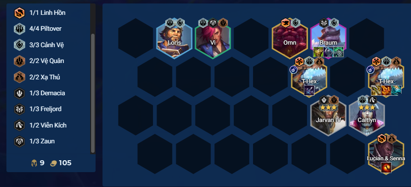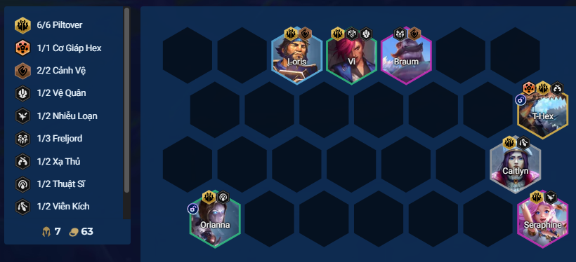 T-Hex đang làm mưa làm gió trong meta DTCL 16.1C. Tuy nhiên, mốc 6 của Piltover lại không quá mạnh, đặc biệt là nếu bạn chọn mũi khoan. Do đó, hầu hết người chơi sẽ có xu hướng thay thế Vi và Loris bằng các tướng 4-5 vàng chất lượng hơn, hình thành form bài nửa EXODIA.
