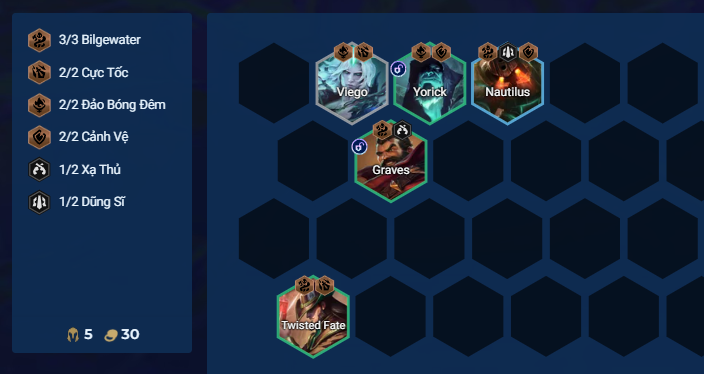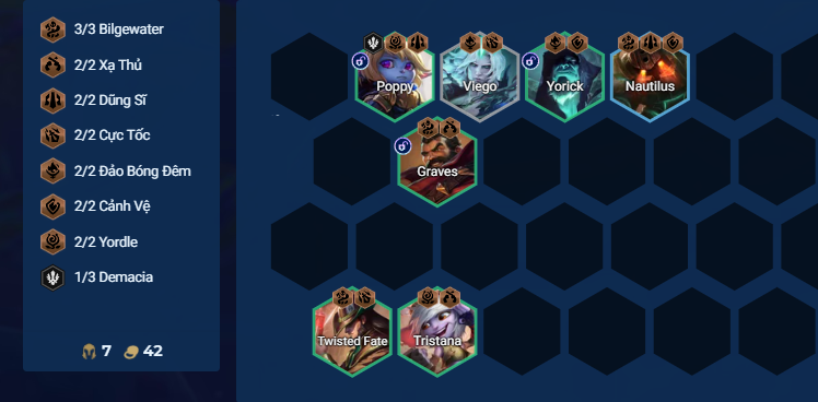 - Lúc mua đồ bằng ngân xà thì bỏ 5-7 Bilgewater vào, xong rồi bỏ ra chơi 3 Bilgewater thôi vì tộc này không có buff mạnh